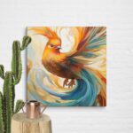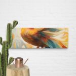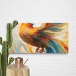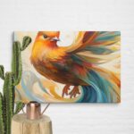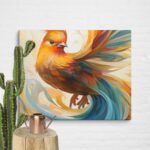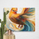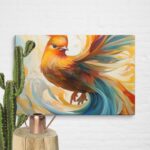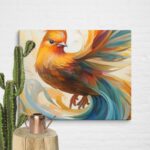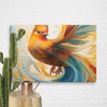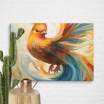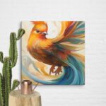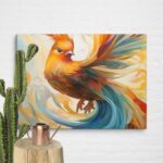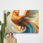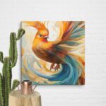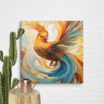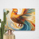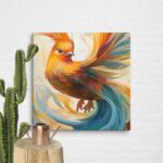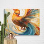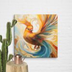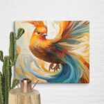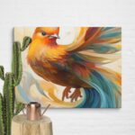 “AIWUJIWU: A Golden Pheasant in Flight” captures the vibrant essence and dynamic movement of a golden pheasant soaring through the sky. This piece is an enchanting fusion of Impressionism and Cubism, where abstract forms and vivid colors converge to evoke the bird’s grace and energy. Each brushstroke and geometric shape is meticulously crafted to highlight the interplay of light and motion, creating a mesmerizing visual symphony. This artwork invites viewers to experience the elegance of the golden pheasant from multiple perspectives, blending traditional beauty with modern artistic innovation.