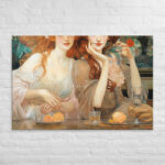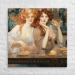 Two young women sit gracefully at a charming European café in the heart of the 1920s, their laughter and warmth reflecting the spirit of the era. Dressed in the timeless elegance of flapper fashion, they share a quiet moment over coffee, surrounded by soft art deco touches and the gentle buzz of the city. Their eyes light up with joy and sophistication, capturing the essence of a time when life was vibrant and full of possibilities. This piece invites viewers to step back into a world of vintage charm, friendship, and the timeless beauty of simple moments.