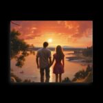 Embrace at Dusk: A Romantic Vista” is a captivating art piece that embodies the serene beauty of a sunset shared between soulmates. This artwork intricately weaves the vibrant hues of the setting sun with the tender emotions of love and companionship. The artist, inspired by a personal moment of connection, skillfully captures the essence of a romantic day drawing to a close. As the sky transitions from golden warmth to the cool embrace of twilight, the silhouettes of two lovers bask in the remaining light, their figures intertwined in an eternal embrace. This piece is not just a visual journey but an invitation to recall and cherish the lovely, fleeting moments that define our deepest connections. Through “Embrace at Dusk,” the viewer is transported to a place of peace, love, and unparalleled beauty, making it a timeless testament to the power of love and the mesmerizing beauty of nature’s farewells.