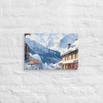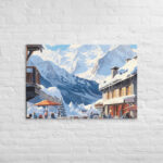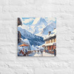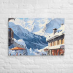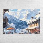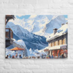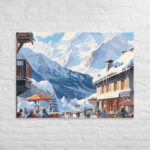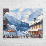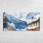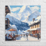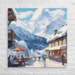 Immerse yourself in the serene beauty of Chamonix during winter with “European Regalo.” This evocative piece captures the majestic snow-covered peaks and the tranquil charm of a European winter landscape. The viewer is invited to sit and revel in the serene, almost timeless, atmosphere of the scene, as the snowflakes dance in the crisp mountain air. This artwork combines the raw beauty of nature with a contemplative invitation to pause and appreciate the quiet elegance of winter in the Alps.