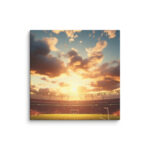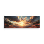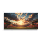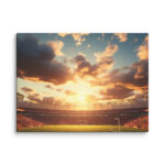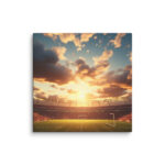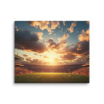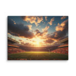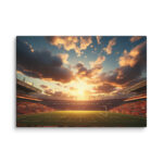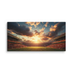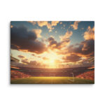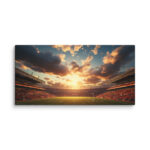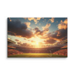 This captivating artwork captures the enchanting essence of a stadium bathed in the warm glow of the golden hour. Volumetric light filters through the air, creating ethereal beams that dance across the scene, illuminating the vibrant energy of the space. The atmosphere is alive with anticipation, as silhouettes of spectators blend into the breathtaking backdrop. Rich hues of gold and amber evoke a sense of nostalgia and magic, inviting viewers to immerse themselves in this cinematic moment where time stands still and dreams take flight.
