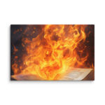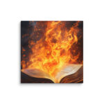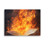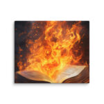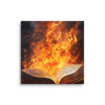 In the depths of obscurity, a colossal book burns with an otherworldly blaze, illuminating the surrounding darkness with its fiery light. The once-immense tome, representing the weight of knowledge and history, now crumbles into ashes amidst a backdrop of impenetrable shadow. This piece explores the destruction of wisdom and the transformation of once-cherished ideas into ephemeral embers. The contrast between the intense flames and the enveloping darkness evokes a profound reflection on the impermanence of knowledge and the relentless passage of time.