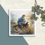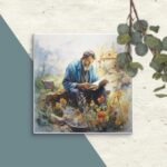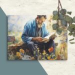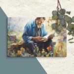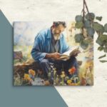 In ‘Inheritance Unbound,’ a poignant narrative unfolds within the frame. The central figure, ‘The Man with the Book in His Hand,’ stands in contemplation, clutching a tome that symbolizes knowledge passed down through generations. Yet, it’s the subtle detail of the hem of his late mother’s garment trailing behind him that evokes a deeper emotional resonance. This tender connection to the past, embodied in the delicate fabric, serves as a tether between memory and present. Through this artwork, themes of legacy, loss, and the enduring bond between parent and child are explored, inviting viewers to reflect on their own familial ties and the enduring echoes of the past in our lives.