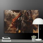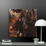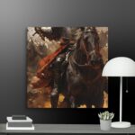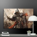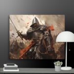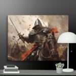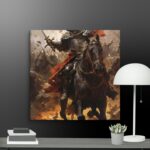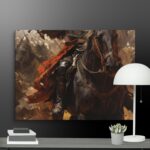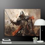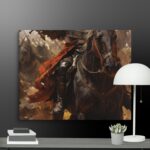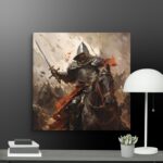 This evocative piece captures a lone knight in the midst of the historic Battle of Navas de Tolosa, depicted without his helmet, revealing a face marked by both the ferocity of battle and the vulnerability of humanity. The absence of the helmet symbolizes not only the raw courage of the knight but also the personal sacrifice and the intense emotions faced in the heat of conflict. Through intricate details and a dramatic composition, the artwork invites viewers to explore the tension between protection and exposure, strength and frailty, during one of history’s pivotal battles.
