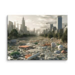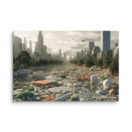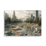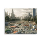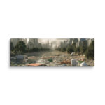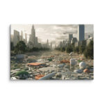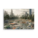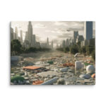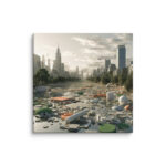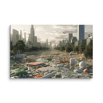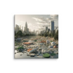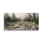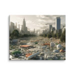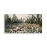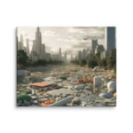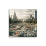 This artwork portrays a stark, futuristic vision of Madrid, deeply impacted by climate change. The iconic cityscape, once vibrant, is now shrouded in an eerie atmosphere of extreme weather conditions. The skyline, with familiar landmarks, appears distorted by intense heatwaves, dry winds, and encroaching desert-like landscapes. Subtle visual cues depict the struggle of the city and its people against the forces of nature, emphasizing the urgent need for climate action. This piece serves as a haunting reminder of the fragility of our environment and the consequences of human impact.