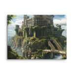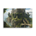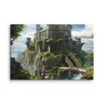 Enveloped in a rich, verdant jungle, the Mystical Brasilian Castle rises majestically from the landscape, its ancient stone walls entwined with vibrant, flowering vines. Bathed in the warm, golden hues of a setting sun, the castle exudes an aura of timeless enchantment. Its turrets pierce the sky, while the surrounding lush foliage whispers tales of forgotten legends and untold adventures. This piece captures the grandeur and mystique of a bygone era, blending natural beauty with architectural splendor in a harmonious symphony of color and form.