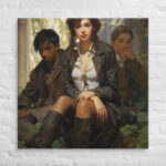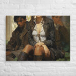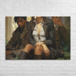 A captivating portrayal of a young woman exuding confidence and grace, wearing a stylish vest and a playful miniskirt. She stands surrounded by an aura of vibrant energy and color, symbolizing youth, individuality, and the dynamic essence of modern fashion. This artwork captures the harmony of poised elegance and the lively spirit of the moment, drawing viewers into its vibrant narrative.