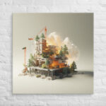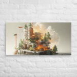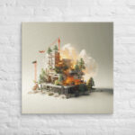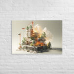 A refined exploration of architectural simplicity, this piece distills the essence of construction into a minimalist form. Utilizing clean lines, geometric shapes, and a restrained color palette, the artwork envisions a conceptual fair where the focus is on the purity of design. The stylized elements evoke a sense of modernity and balance, celebrating the intersection of function and aesthetics in contemporary construction.