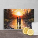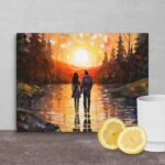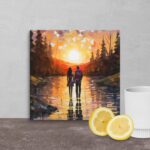 Step into the ethereal embrace of “Strolling through Stardust,” an enchanting oil painting that transports viewers into a realm where love and cosmos intertwine. In this captivating piece, a couple gracefully traverses a dreamlike landscape, their silhouettes illuminated by the soft glow of celestial bodies above. The scene exudes an aura of timeless romance, as the pair meanders hand in hand amidst swirling nebulae and shimmering stars. With masterful brushstrokes and a palette of celestial hues, the artist captures the essence of cosmic love, inviting viewers to immerse themselves in the boundless beauty of the universe and the intimate connection shared by two souls on a celestial journey. “Strolling through Stardust” is not merely a painting—it is a testament to the enduring power of love to transcend the confines of earthly existence and unite hearts across the vast expanse of space and time.