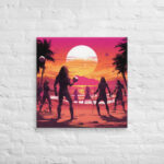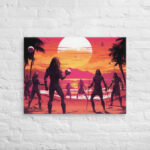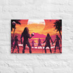 In this dynamic and playful scene, the Avengers face off against The Fellows in an exhilarating volleyball match. The vibrant energy of the game captures each hero’s unique skills and personalities, blending high-flying action with a touch of friendly competition. The artwork highlights the contrast between the super-powered prowess of the Avengers and the distinctive style of The Fellows, creating a thrilling and entertaining clash on the volleyball court.
