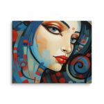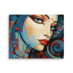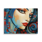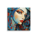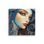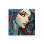 This artwork captures the mystique of a woman poised in timeless elegance. Her gaze, a mixture of vulnerability and strength, draws the viewer into her world of silent stories. The brushstrokes blend modern surrealism with classic portraiture, highlighting intricate details in her features while surrounding her with abstract, dreamlike elements. The composition is a celebration of femininity and the complex interplay of emotion and identity.
