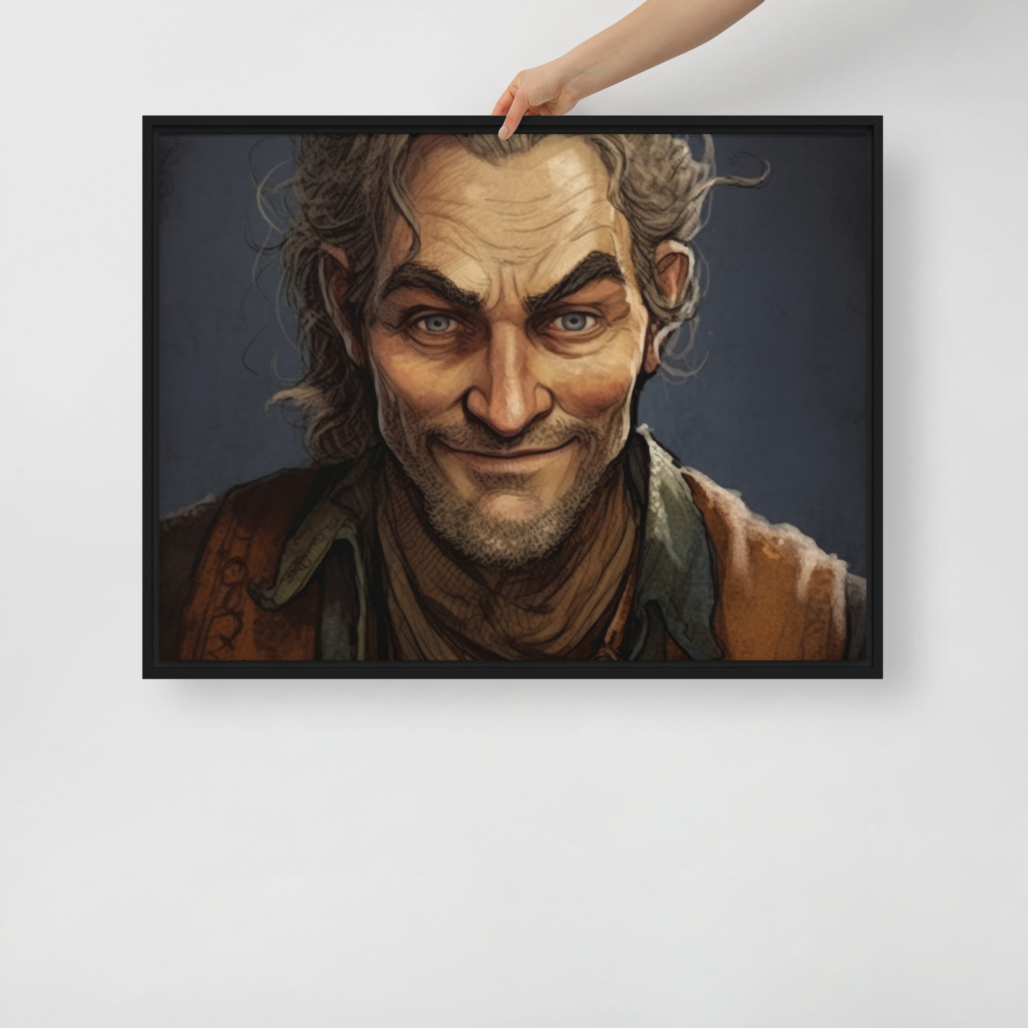 In The Smirking Sorcerer, the enigmatic figure of a middle-aged wizard is captured in a moment of quiet confidence. His sly smirk hints at a deep knowledge of ancient magic and secrets. With his weathered face and mysterious aura, this wizard stands poised between wisdom and mischief. His gaze, filled with a knowing glint, invites the viewer to ponder the spells and stories he’s yet to reveal. The intricate details of his robes, glowing subtly with arcane symbols, complete this captivating portrayal of a powerful sorcerer with a sense of humor.