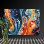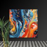 “Transcendental Fusion” is a mesmerizing blend of surrealism and abstract expressionism, created using thick layers of acrylic paint. This captivating piece invites viewers into a dreamscape where vivid colors and bold textures collide. The interplay of light and shadow, combined with the dynamic movement of the brushstrokes, evokes a sense of fluidity and depth. Each glance reveals new details, drawing the observer into an ever-evolving narrative that transcends reality and challenges the boundaries of perception.