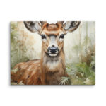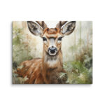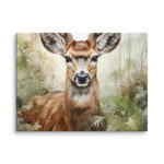 This enchanting art piece features a gentle reindeer, elegantly illustrated in a vintage style. Set against a pristine white background, the reindeer’s soft, intricate details and warm hues evoke a sense of nostalgia and serenity. The artwork captures the essence of a peaceful winter scene, inviting viewers to immerse themselves in the charm of this timeless creature. The delicate brushwork and subtle textures create a dreamy atmosphere, making it a perfect addition to any cozy, festive decor.