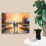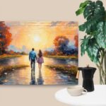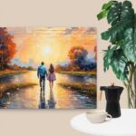 “Whispers of Arashikazahn: A Romantic Reverie” is a captivating oil painting that invites viewers into a world where nature and emotion intertwine in harmonious serenity. This artwork is a profound exploration of the romantic style, characterized by its vibrant play of light and shadow, intricate details, and a deep, emotive atmosphere that seems almost tangible.