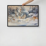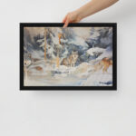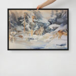In the crisp serenity of a winter landscape, wolves stand poised against a backdrop of vivid sunset hues that cut through the cold. Braamiothemystic captures the quiet power of the pack as they navigate snow-dusted fields, their forms highlighted by high-contrast light and shadow. This piece evokes a sense of wilderness mystery, with the wolves as guardians of the fading daylight, their silhouettes both ethereal and grounded. With rich colors and sharp contrasts, this artwork immerses viewers in the haunting beauty of nature as winter’s twilight settles in.